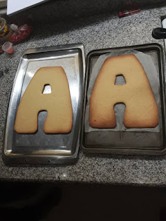 En un bol cernimos la harina de trigo, la harina de almendras y la pizca de sal, y reservamos. Por otro lado en un bol colocamos la margarina y el azúcar y batimos aproximadamente por 5 minutos. Luego agregamos el huevo previamente batido junto con la vainilla, una vez todo integrado agregamos poco a poco la mezcla de las harinas y batimos más lento. Cuando todo este listo sacamos la masa del bol y dividimos en dos, y formamos un rectángulo entre dos láminas de papel encerado y llevamos a la nevera por 30 minutos, luego cortamos en forma de A con una plantilla que haremos con cartulina para guiarnos, seguidamente llevamos al horno por 30 minutos.